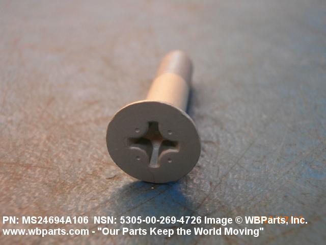 Part Alternates: MS24694A106, 5305-00-269-4726, 00-269-4726, 5305002694726, 002694726