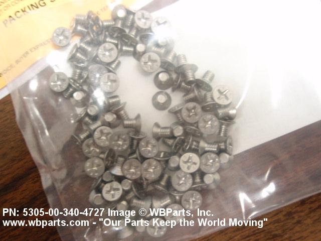 5305-00-340-4727 An externally threaded fastener whose threaded portion is of one nominal diameter, No 0 (0.060 in./1.5 mm) or larger, designed to be held or driven with either a wrench or an inserted driver or both (excluding internal socket or internal multiple spline types), in sizes below No. 10 (0.190 in./5 mm). No. 10 and larger sizes must have a head designed for any type inserted driver (excluding internal socket or internal multiple spline types), but may also be designed for external wrenching. A locking feature may be incorporated in the design of the head or threads. Excludes BOLT, CLEVIS; BOLT, EXTERNALLY RELIEVED BODY; SCREW, EXTERNALLY RELIEVED BODY; and SCREW, ASSEMBLED WASHER. See also, SCREW, INSTRUMENT; BOLT, MACHINE; BOLT, INTERNAL WRENCHING; and SCREW, CAP SOCKET HEAD.