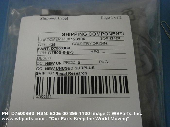 NSN 5305-00-399-1130 D75008B3, D7500-8B3, ES83870383