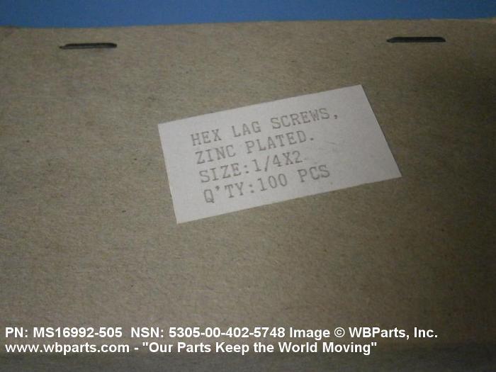 NSN 5305-00-402-5748 MS16992505, MS16992-505, ANSI B18.2.1