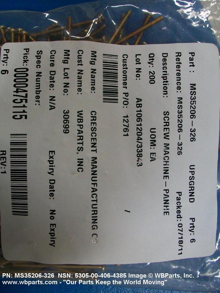 | MS35206-326 | 96906 | MILITARY STANDARDS PROMULGATED BY MILITARY DEPARTMENTS |