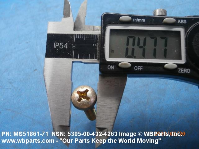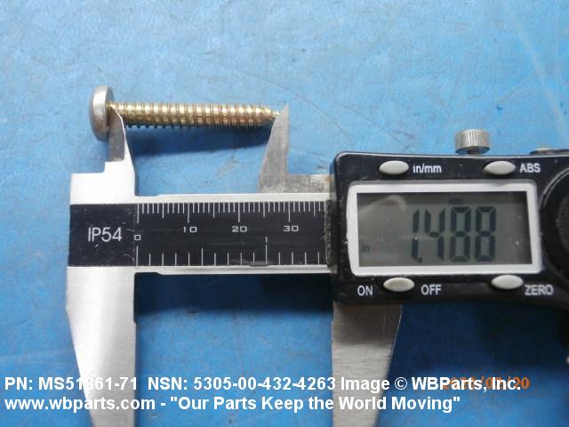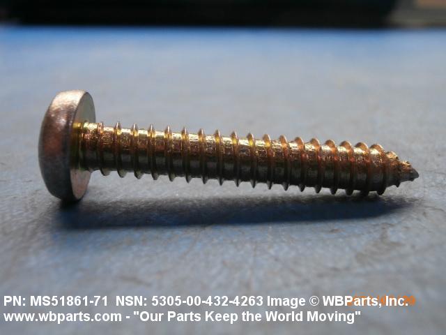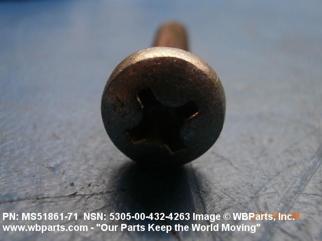 Part Alternates: MS5186171, MS51861-71, FFS107, 5305-00-432-4263, 00-432-4263, 5305004324263, 004324263