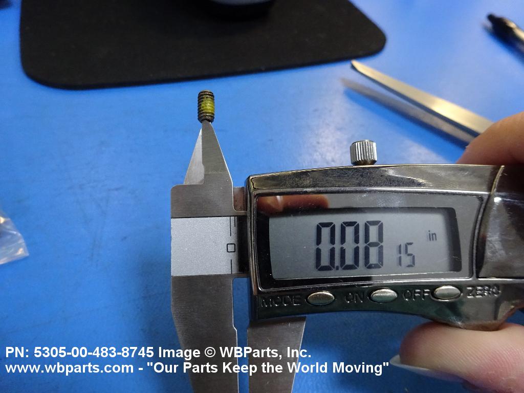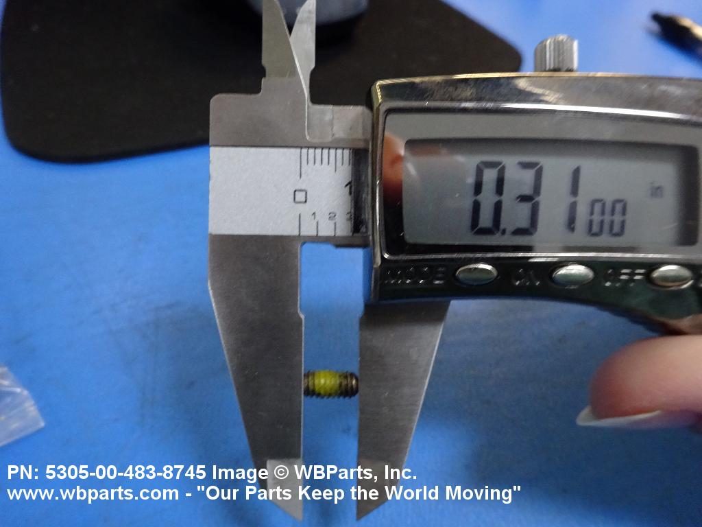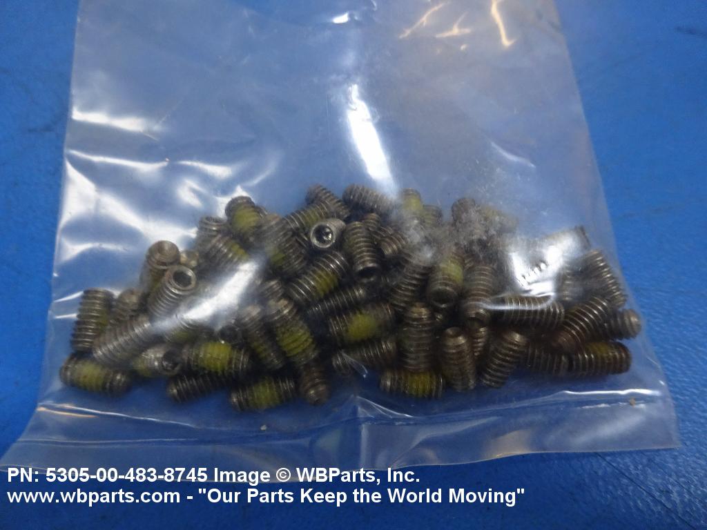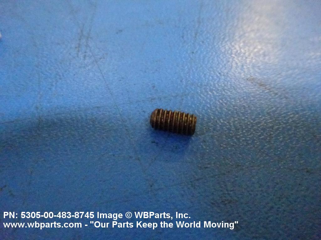 5305-00-483-8745 An externally threaded device whose threaded portion is of one nominal diameter with or without a head and having a cup, cone, or other type of machined point designed to prevent or restrict relative movement of parts and designed to be driven with either a wrench or inserted driver. A locking feature may be incorporated in the design of the head or threads.