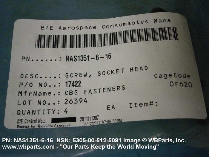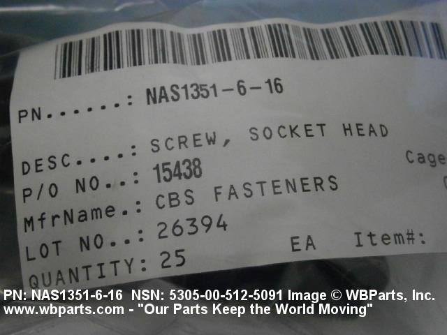 NSN 5305-00-512-5091 NAS1351616, NAS1351-6-16, 00-512-5091