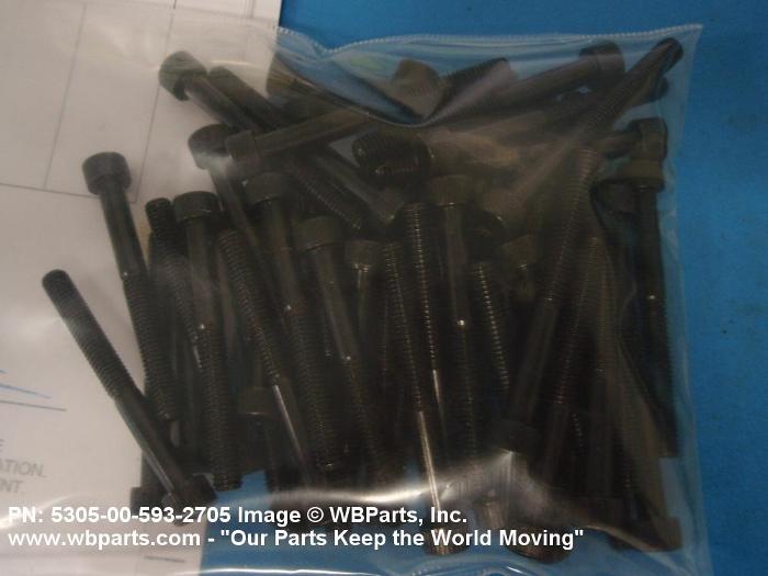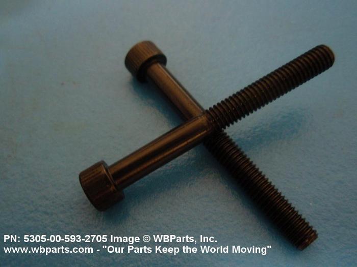 5305-00-593-2705 An externally threaded fastener whose threaded portion is of one nominal diameter. The head has an internal socket or multiple spline for use with an inserted driver. A locking feature may be incorporated in the design of the head or threads. Excludes items with bevel (conical) heads. See BOLT, INTERNAL WRENCHING. Excludes SCREW, SHOULDER; and SCREW, MACHINE.