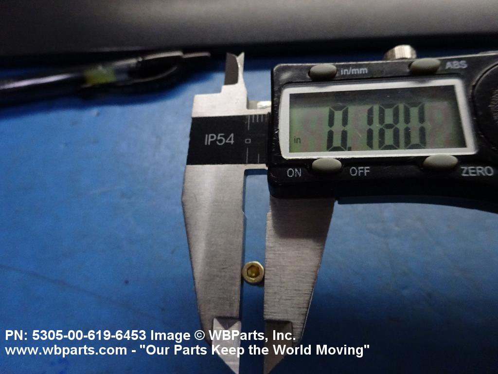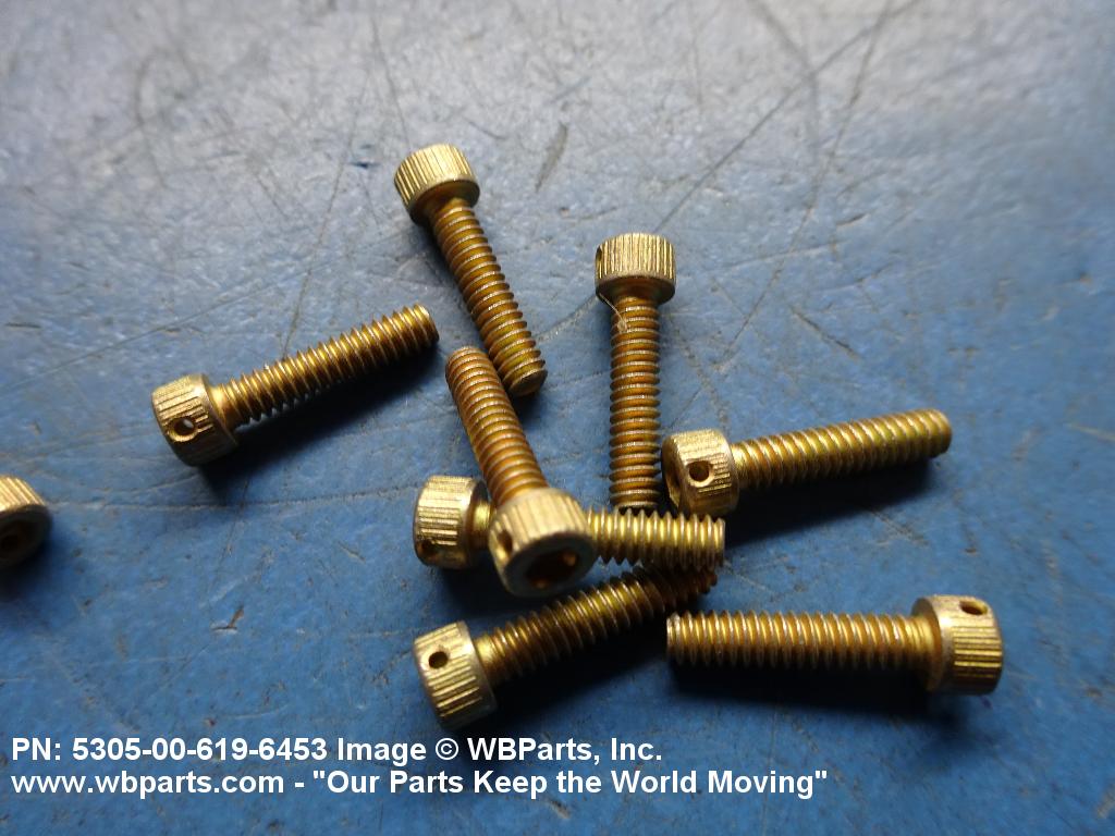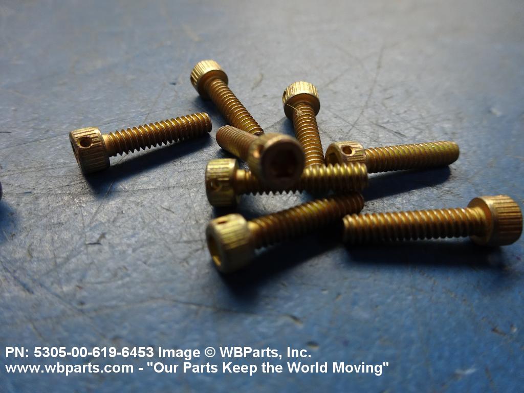 5305-00-619-6453 An externally threaded fastener whose threaded portion is of one nominal diameter. The head has an internal socket or multiple spline for use with an inserted driver. A locking feature may be incorporated in the design of the head or threads. Excludes items with bevel (conical) heads. See BOLT, INTERNAL WRENCHING. Excludes SCREW, SHOULDER; and SCREW, MACHINE.