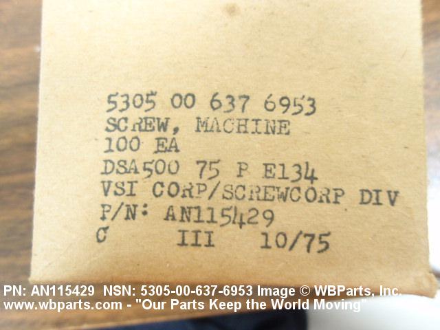 NSN 5305-00-637-6953 AN115429, 00-637-6953, 006376953
