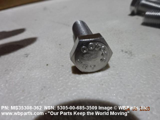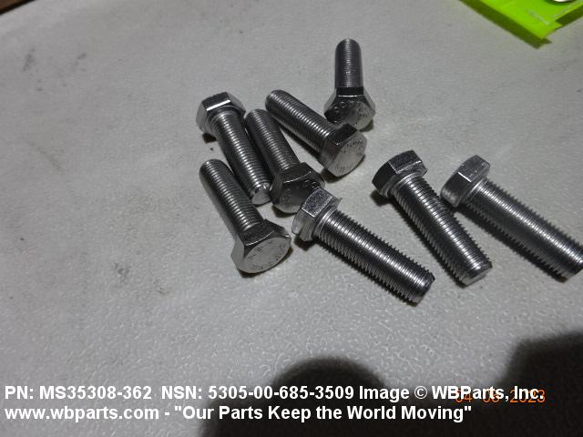 5305-00-685-3509 An externally threaded fastener designed for insertion into holes in assembled parts, for mating with a preformed internal thread and for tightening or releasing by torquing the head. The threaded and unthreaded portions are both of the same nominal diameter of 0.190 inch (5 mm) or larger. Head dimensions and sizes of threaded and unthreaded portions shall conform to internationally recognized fastener standards. The thread length being the controlled dimension, the grip length is not specified. A locking feature may be incorporated in the design of the head or threads. The head is not designed to be held or driven with an inserted driver or by the thumb and fingers. Excludes BOLT,MACHINE; BOLT,EXTERNALLY RELIEVED BODY; BOLT,INTERNAL WRENCHING; and SCREW,CAP,SOCKET HEAD.