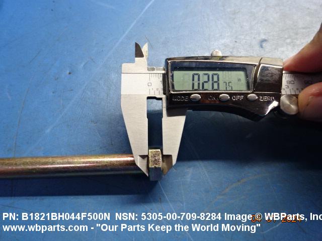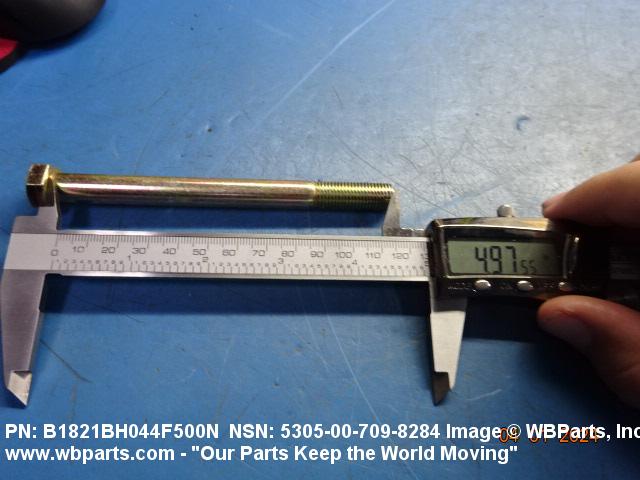 5305-00-709-8284 An externally threaded fastener designed for insertion into holes in assembled parts, for mating with a preformed internal thread and for tightening or releasing by torquing the head. The threaded and unthreaded portions are both of the same nominal diameter of 0.190 inch (5 mm) or larger. Head dimensions and sizes of threaded and unthreaded portions shall conform to internationally recognized fastener standards. The thread length being the controlled dimension, the grip length is not specified. A locking feature may be incorporated in the design of the head or threads. The head is not designed to be held or driven with an inserted driver or by the thumb and fingers. Excludes BOLT,MACHINE; BOLT,EXTERNALLY RELIEVED BODY; BOLT,INTERNAL WRENCHING; and SCREW,CAP,SOCKET HEAD.
