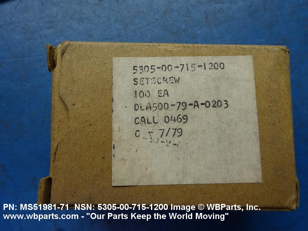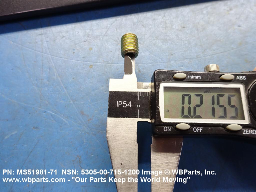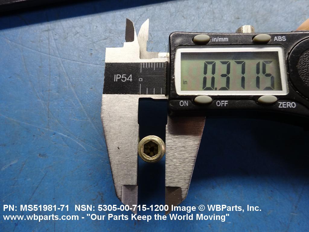 Part Alternates: MS5198171, MS51981-71, 5305-00-715-1200, 00-715-1200, 5305007151200, 007151200