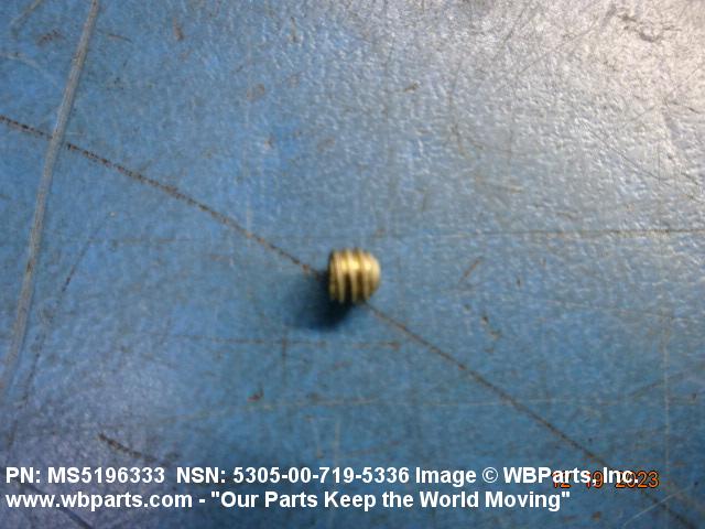 5305-00-719-5336 An externally threaded device whose threaded portion is of one nominal diameter with or without a head and having a cup, cone, or other type of machined point designed to prevent or restrict relative movement of parts and designed to be driven with either a wrench or inserted driver. A locking feature may be incorporated in the design of the head or threads.