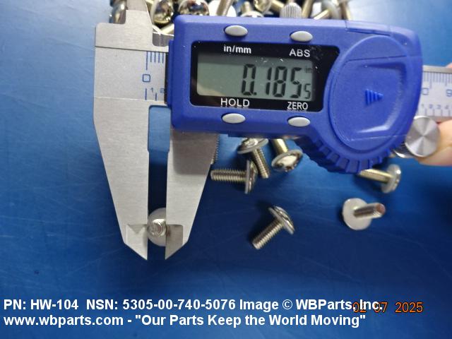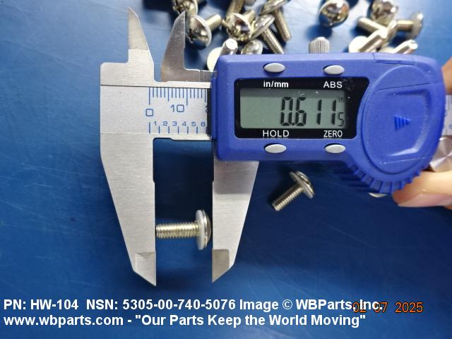 5305-00-740-5076 An externally threaded fastener whose threaded portion is of one nominal diameter, No 0 (0.060 in./1.5 mm) or larger, designed to be held or driven with either a wrench or an inserted driver or both (excluding internal socket or internal multiple spline types), in sizes below No. 10 (0.190 in./5 mm). No. 10 and larger sizes must have a head designed for any type inserted driver (excluding internal socket or internal multiple spline types), but may also be designed for external wrenching. A locking feature may be incorporated in the design of the head or threads. Excludes BOLT, CLEVIS; BOLT, EXTERNALLY RELIEVED BODY; SCREW, EXTERNALLY RELIEVED BODY; and SCREW, ASSEMBLED WASHER. See also, SCREW, INSTRUMENT; BOLT, MACHINE; BOLT, INTERNAL WRENCHING; and SCREW, CAP SOCKET HEAD.