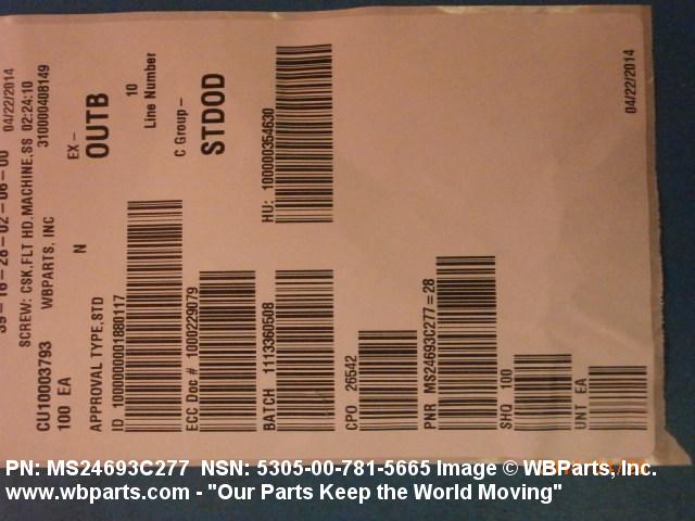 NSN 5305-00-781-5665 MS24693C277, MS24693-C277, MS5195867