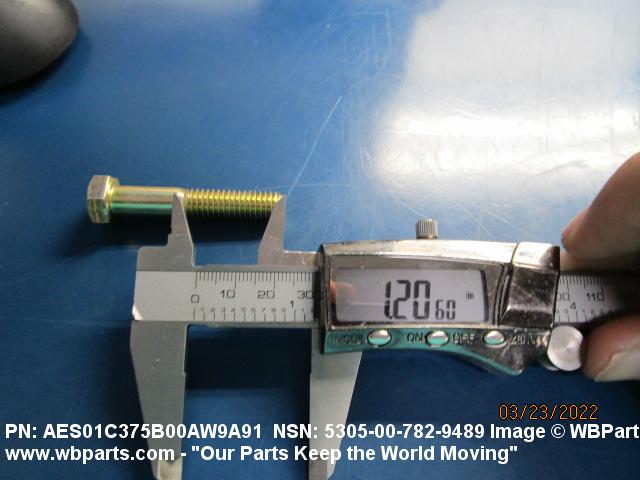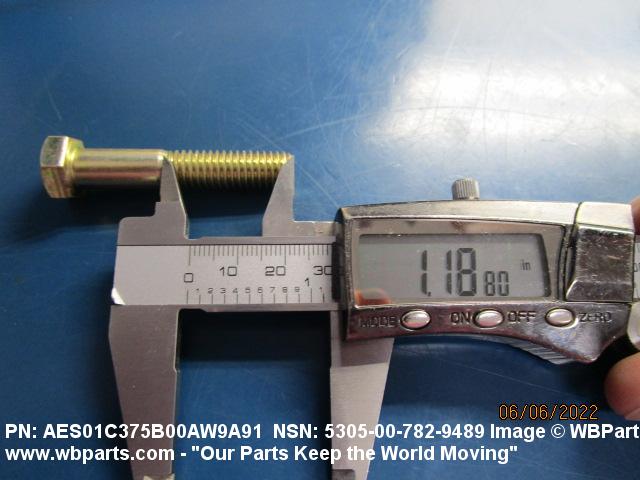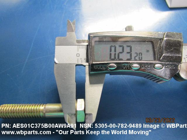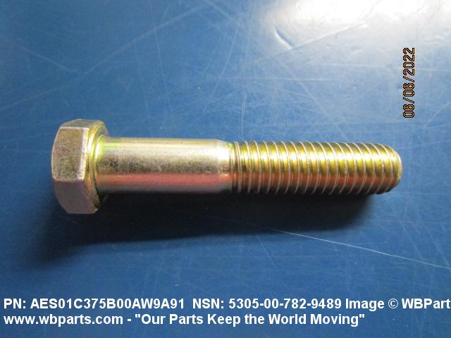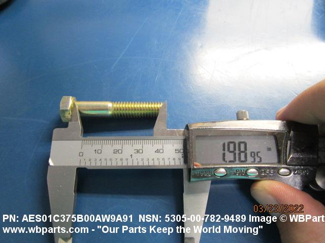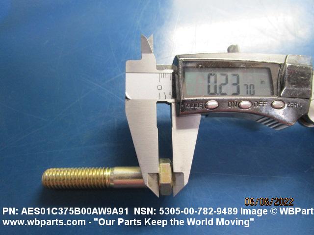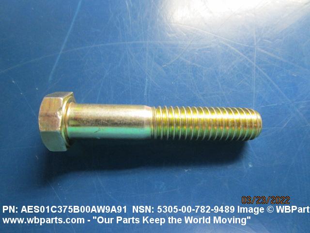 5305-00-782-9489 An externally threaded fastener designed for insertion into holes in assembled parts, for mating with a preformed internal thread and for tightening or releasing by torquing the head. The threaded and unthreaded portions are both of the same nominal diameter of 0.190 inch (5 mm) or larger. Head dimensions and sizes of threaded and unthreaded portions shall conform to internationally recognized fastener standards. The thread length being the controlled dimension, the grip length is not specified. A locking feature may be incorporated in the design of the head or threads. The head is not designed to be held or driven with an inserted driver or by the thumb and fingers. Excludes BOLT,MACHINE; BOLT,EXTERNALLY RELIEVED BODY; BOLT,INTERNAL WRENCHING; and SCREW,CAP,SOCKET HEAD.