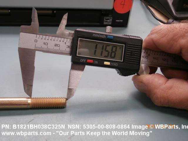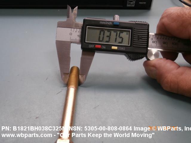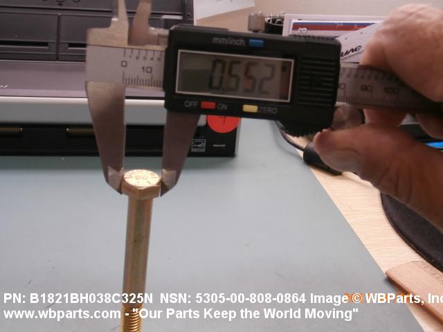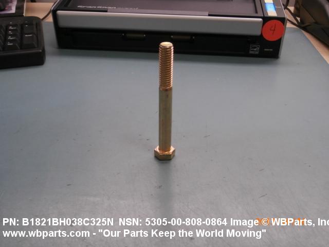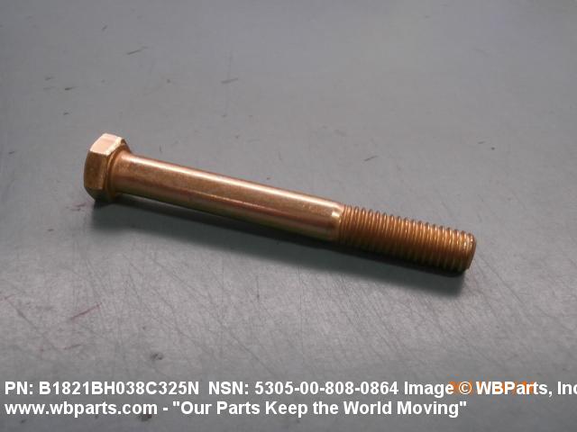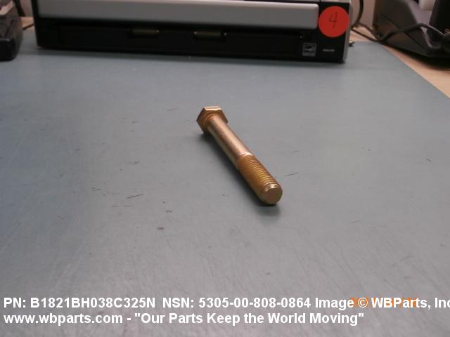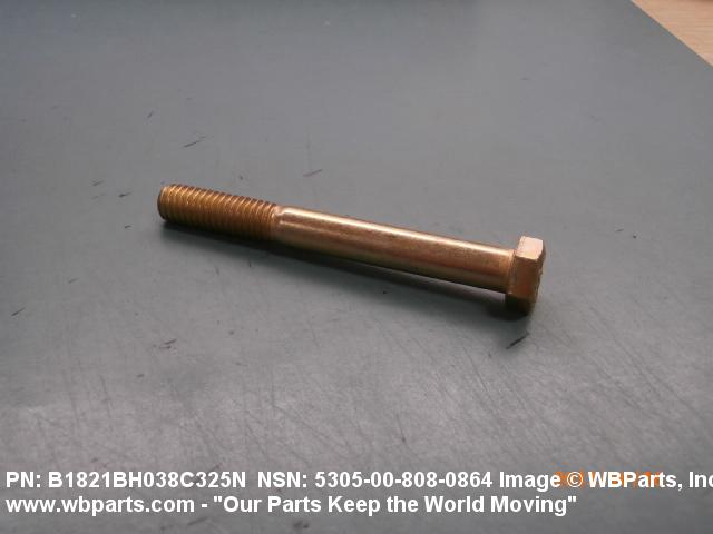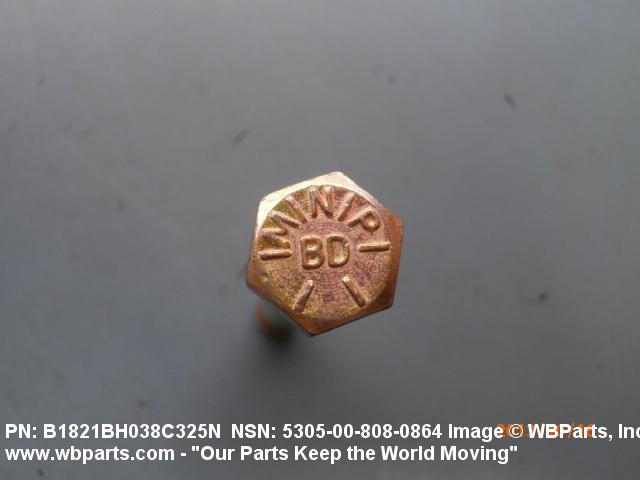 5305-00-808-0864 An externally threaded fastener designed for insertion into holes in assembled parts, for mating with a preformed internal thread and for tightening or releasing by torquing the head. The threaded and unthreaded portions are both of the same nominal diameter of 0.190 inch (5 mm) or larger. Head dimensions and sizes of threaded and unthreaded portions shall conform to internationally recognized fastener standards. The thread length being the controlled dimension, the grip length is not specified. A locking feature may be incorporated in the design of the head or threads. The head is not designed to be held or driven with an inserted driver or by the thumb and fingers. Excludes BOLT,MACHINE; BOLT,EXTERNALLY RELIEVED BODY; BOLT,INTERNAL WRENCHING; and SCREW,CAP,SOCKET HEAD.