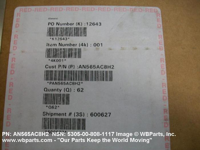 Part Alternates: AN565AC8H2, 5305-00-808-1117, 00-808-1117, 5305008081117, 008081117