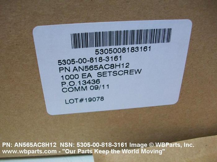 Part Alternates: AN565AC8H12, 5305-00-818-3161, 00-818-3161, 5305008183161, 008183161
