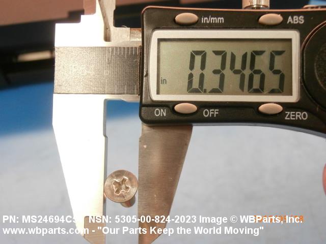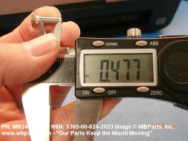 5305-00-824-2023 An externally threaded fastener whose threaded portion is of one nominal diameter, No 0 (0.060 in./1.5 mm) or larger, designed to be held or driven with either a wrench or an inserted driver or both (excluding internal socket or internal multiple spline types), in sizes below No. 10 (0.190 in./5 mm). No. 10 and larger sizes must have a head designed for any type inserted driver (excluding internal socket or internal multiple spline types), but may also be designed for external wrenching. A locking feature may be incorporated in the design of the head or threads. Excludes BOLT, CLEVIS; BOLT, EXTERNALLY RELIEVED BODY; SCREW, EXTERNALLY RELIEVED BODY; and SCREW, ASSEMBLED WASHER. See also, SCREW, INSTRUMENT; BOLT, MACHINE; BOLT, INTERNAL WRENCHING; and SCREW, CAP SOCKET HEAD.