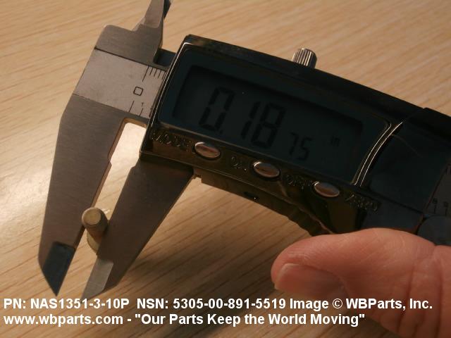 Part Alternates: NAS1351310P, NAS1351-3-10P, NAS60410P, NAS604-10P, 5305-00-891-5519, 00-891-5519, 5305008915519, 008915519