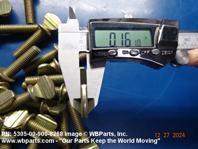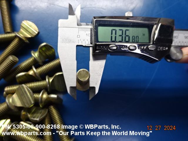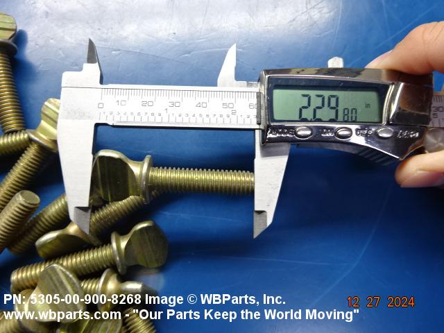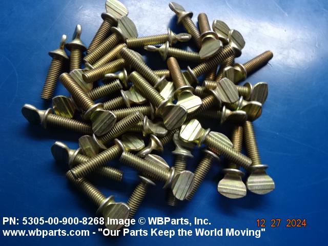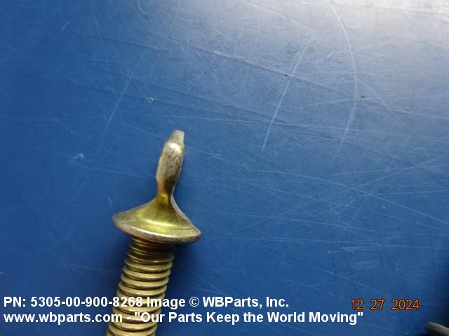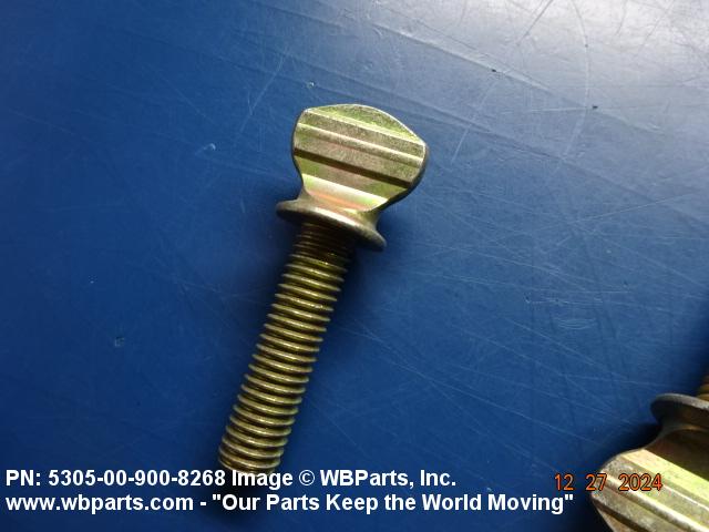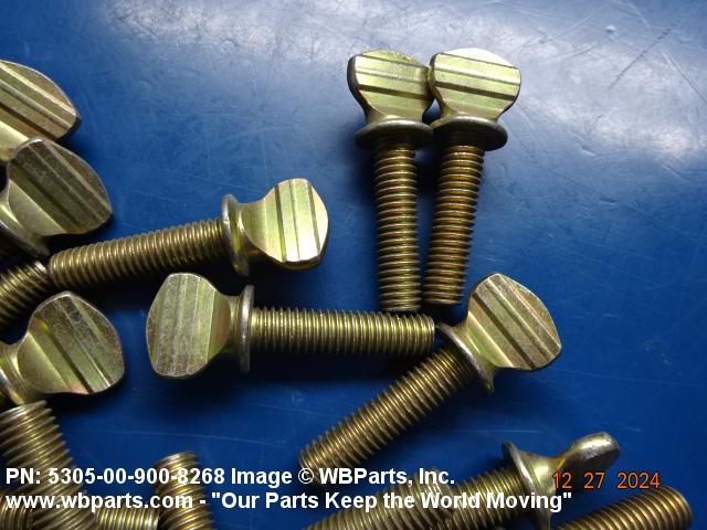 5305-00-900-8268 An externally threaded fastener whose threaded portion is of one nominal diameter. It may have an unthreaded portion with a diameter less than, equal to, or greater than the diameter of the threaded portion. It has either a vertically flattened, circular knurled, or wing type head, all of which are designed for rotation by the thumb and fingers. For items having wrenching facilities such as socket recess, multiple spline or slot heads, use SCREW (as modified) or BOLT (as modified).