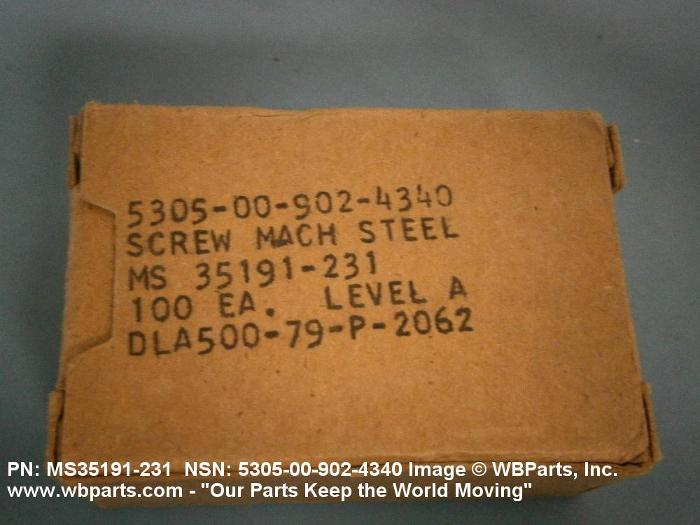 | MS35191-231 | 96906 | MILITARY STANDARDS PROMULGATED BY MILITARY DEPARTMENTS |