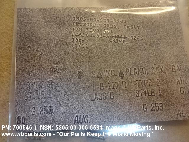 NSN 5305-00-905-5581 7005461, 700546-1, 00-905-5581