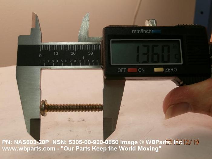 Part Alternates: AN52510R20, AN525-10R20, NAS60320P, NAS603-20P, MILS7839, 5305-00-920-0850, 00-920-0850, 5305009200850, 009200850