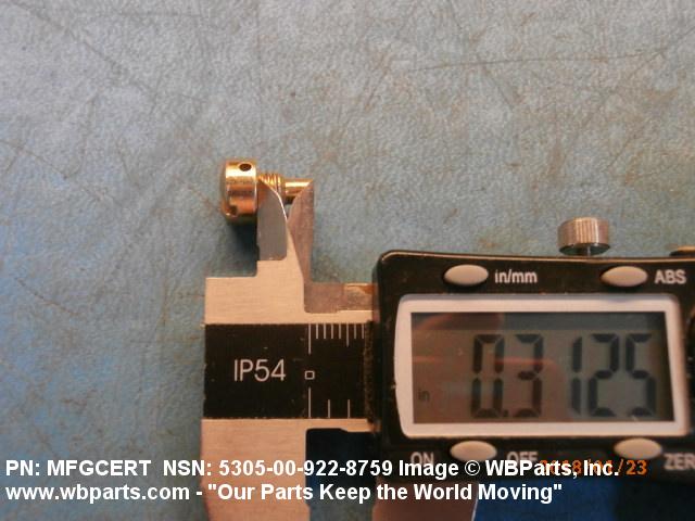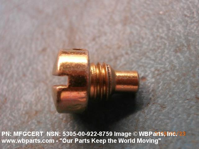 5305-00-922-8759 An externally threaded device whose threaded portion is of one nominal diameter with or without a head and having a cup, cone, or other type of machined point designed to prevent or restrict relative movement of parts and designed to be driven with either a wrench or inserted driver. A locking feature may be incorporated in the design of the head or threads.