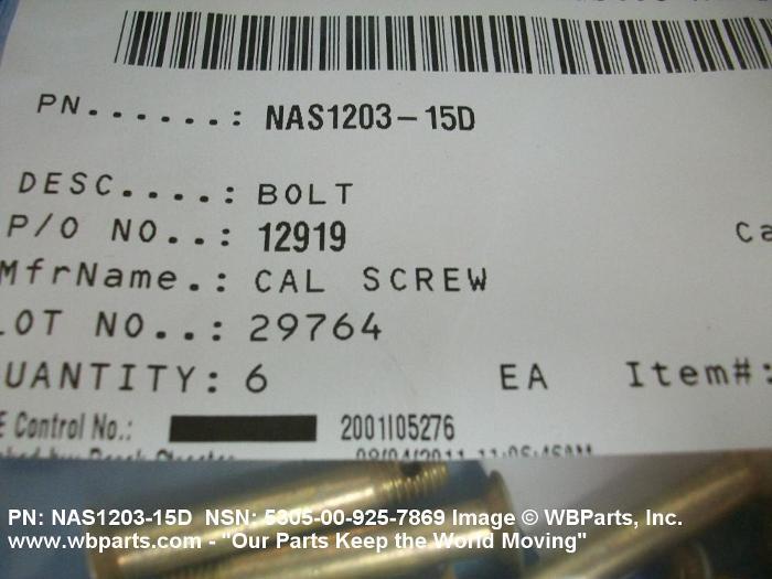 | NAS1203-15D | 07851 | NOR-CAL SUPPLY CO.INC. |