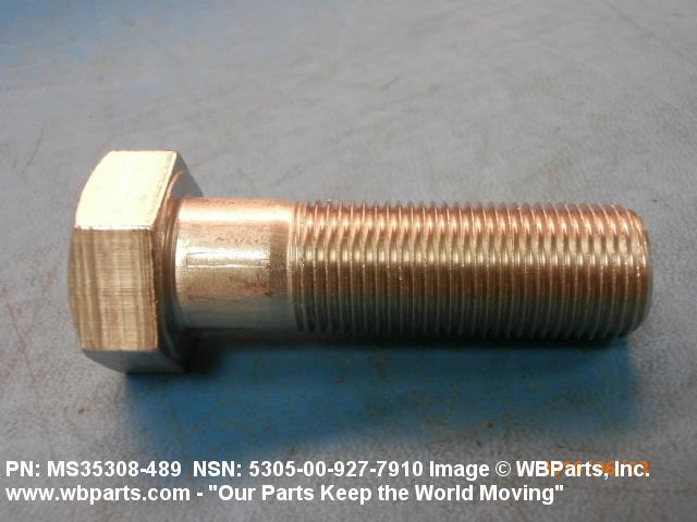 5305-00-927-7910 An externally threaded fastener designed for insertion into holes in assembled parts, for mating with a preformed internal thread and for tightening or releasing by torquing the head. The threaded and unthreaded portions are both of the same nominal diameter of 0.190 inch (5 mm) or larger. Head dimensions and sizes of threaded and unthreaded portions shall conform to internationally recognized fastener standards. The thread length being the controlled dimension, the grip length is not specified. A locking feature may be incorporated in the design of the head or threads. The head is not designed to be held or driven with an inserted driver or by the thumb and fingers. Excludes BOLT,MACHINE; BOLT,EXTERNALLY RELIEVED BODY; BOLT,INTERNAL WRENCHING; and SCREW,CAP,SOCKET HEAD.