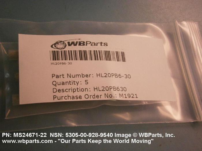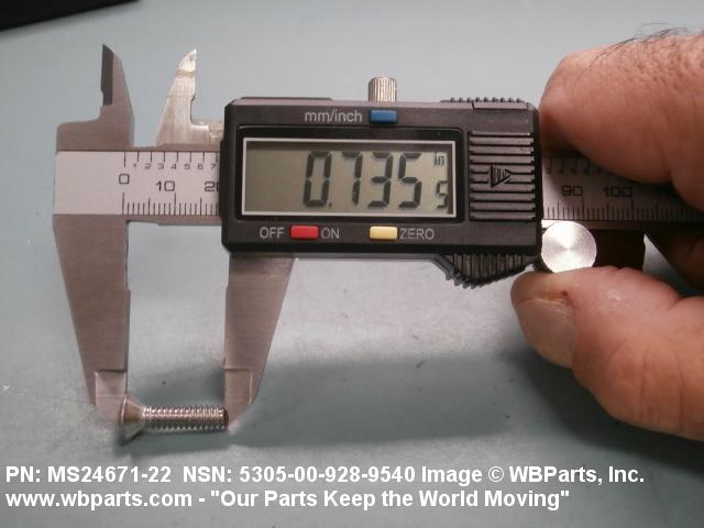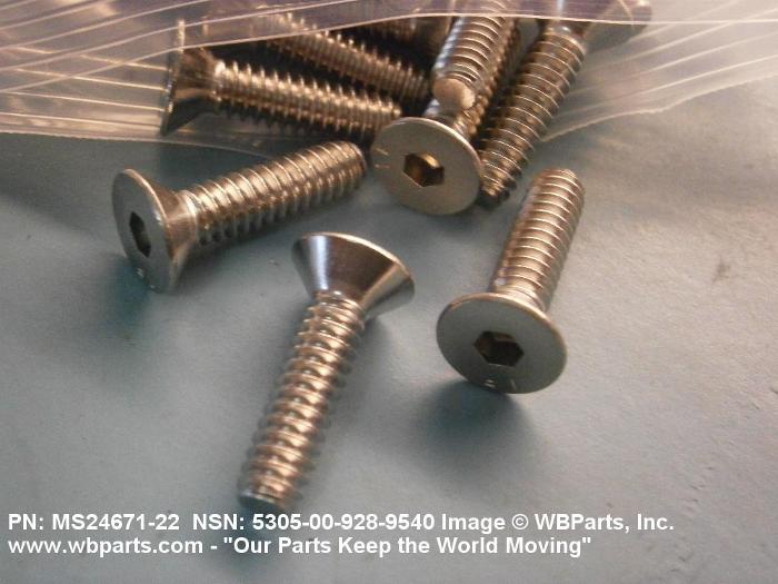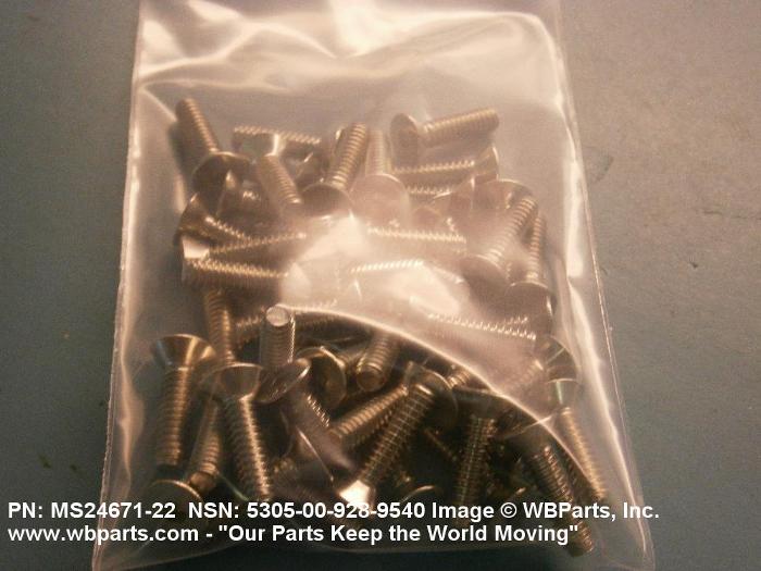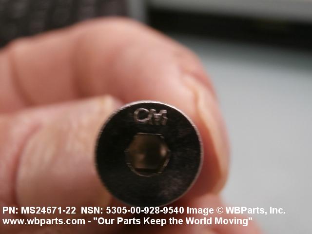 Part Alternates: MS2467122, MS24671-22, 942124-006, 5305-00-928-9540, 00-928-9540, 5305009289540, 942124006, 009289540