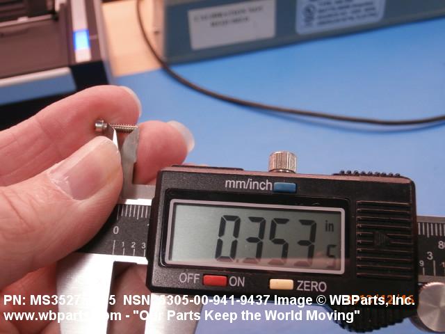5305-00-941-9437 An externally threaded fastener whose threaded portion is of one nominal diameter, No 0 (0.060 in./1.5 mm) or larger, designed to be held or driven with either a wrench or an inserted driver or both (excluding internal socket or internal multiple spline types), in sizes below No. 10 (0.190 in./5 mm). No. 10 and larger sizes must have a head designed for any type inserted driver (excluding internal socket or internal multiple spline types), but may also be designed for external wrenching. A locking feature may be incorporated in the design of the head or threads. Excludes BOLT, CLEVIS; BOLT, EXTERNALLY RELIEVED BODY; SCREW, EXTERNALLY RELIEVED BODY; and SCREW, ASSEMBLED WASHER. See also, SCREW, INSTRUMENT; BOLT, MACHINE; BOLT, INTERNAL WRENCHING; and SCREW, CAP SOCKET HEAD.