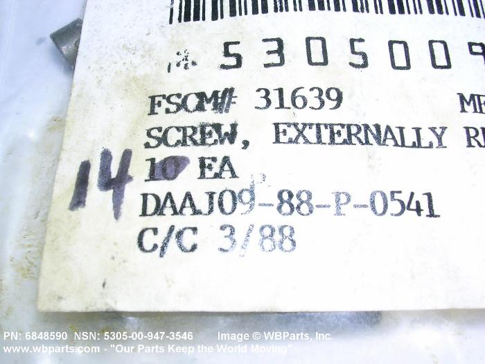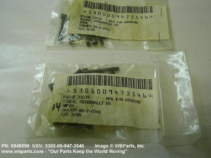 Part Alternates: 6848590, 5305-00-947-3546, 00-947-3546, 5305009473546, 009473546