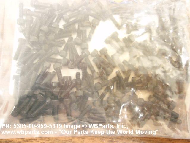 5305-00-959-5319 An externally threaded fastener whose threaded portion is of one nominal diameter. The head has an internal socket or multiple spline for use with an inserted driver. A locking feature may be incorporated in the design of the head or threads. Excludes items with bevel (conical) heads. See BOLT, INTERNAL WRENCHING. Excludes SCREW, SHOULDER; and SCREW, MACHINE.
