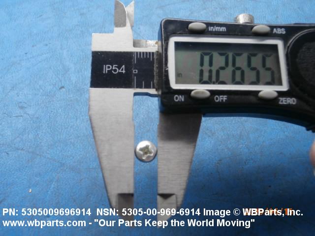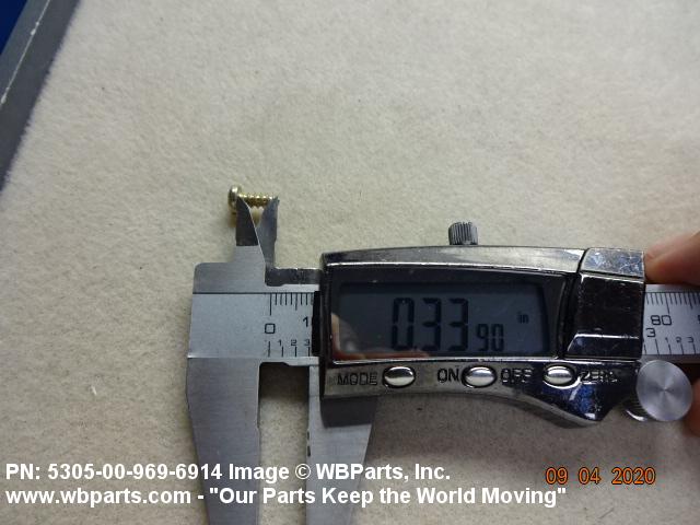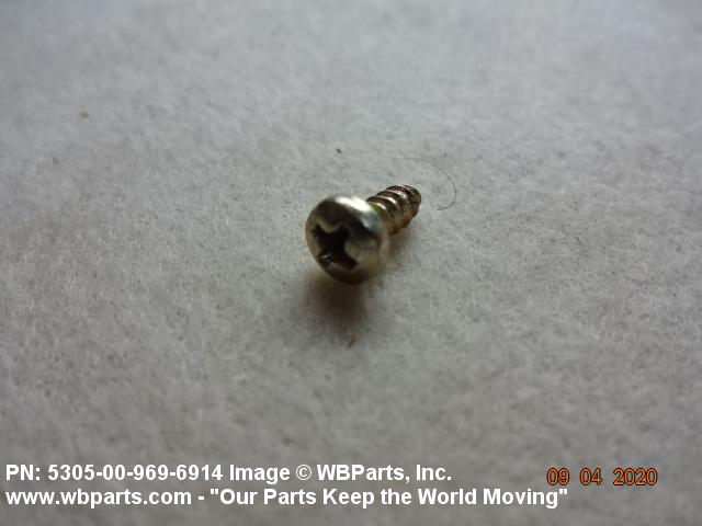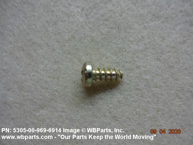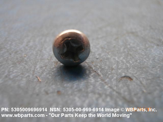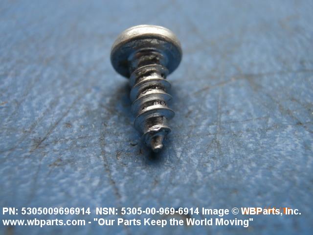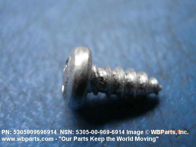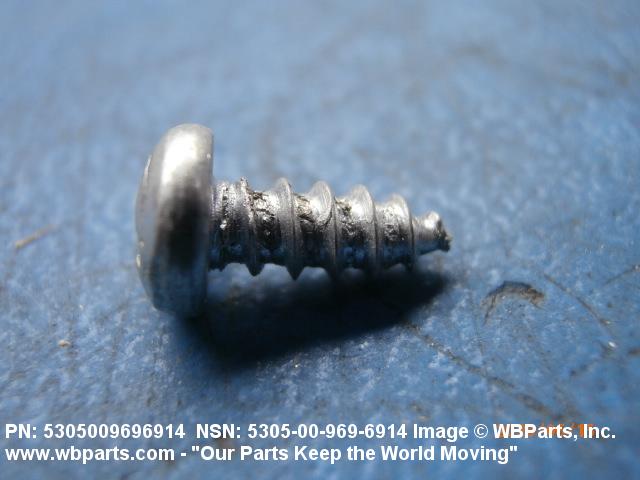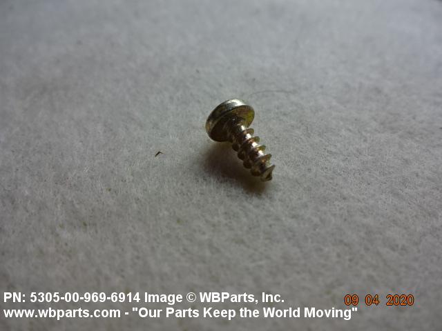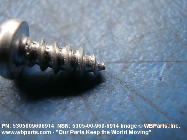 5305-00-969-6914 A hardened externally threaded fastener whose thread extends to the bearing surface of the head. The thread may be fluted or otherwise designed to cut or form its own mating thread. Excludes SCREW, ASSEMBLED WASHER.
