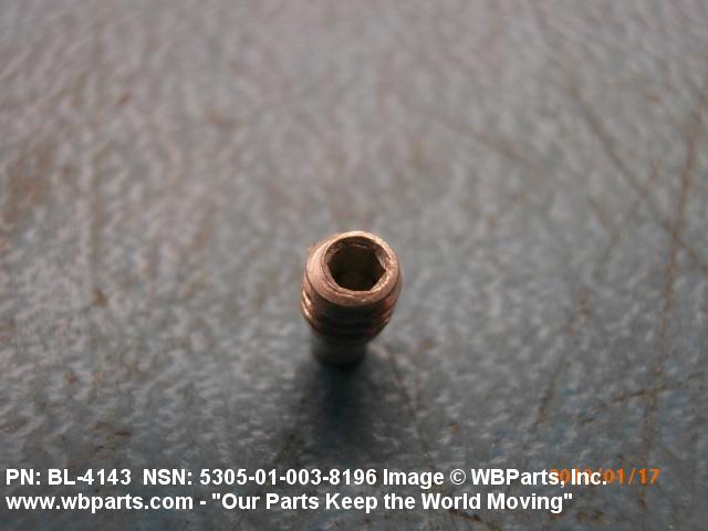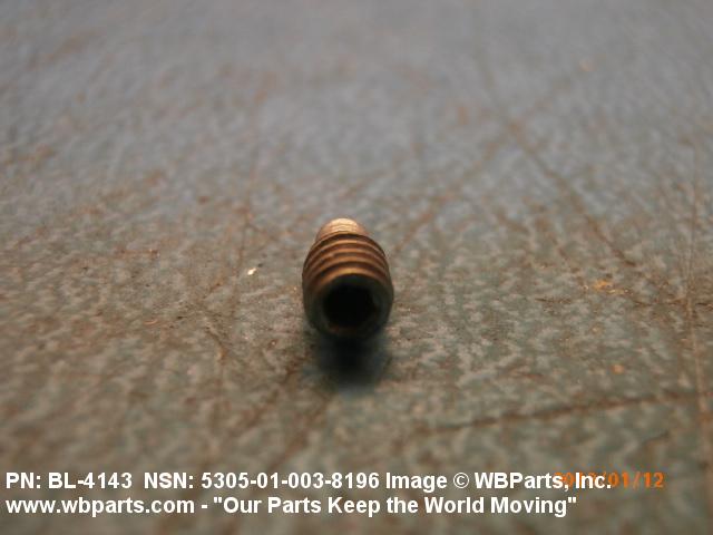 5305-01-003-8196 An externally threaded device whose threaded portion is of one nominal diameter with or without a head and having a cup, cone, or other type of machined point designed to prevent or restrict relative movement of parts and designed to be driven with either a wrench or inserted driver. A locking feature may be incorporated in the design of the head or threads.