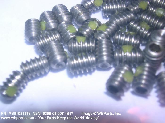 5305-01-007-1517 An externally threaded device whose threaded portion is of one nominal diameter with or without a head and having a cup, cone, or other type of machined point designed to prevent or restrict relative movement of parts and designed to be driven with either a wrench or inserted driver. A locking feature may be incorporated in the design of the head or threads.