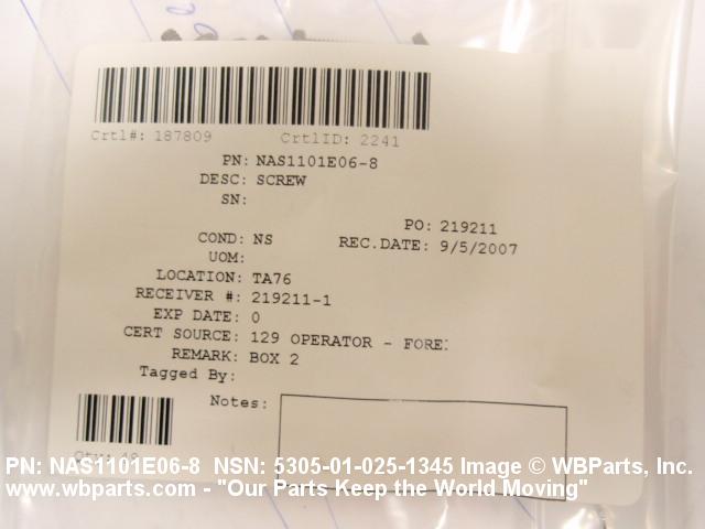 Part Alternates: NAS1101C068, NAS1101C06-8, NAS1101E068, NAS1101E06-8, 10056517 , 5305-01-025-1345, 01-025-1345, 5305009166509, 5305010251345, 010251345