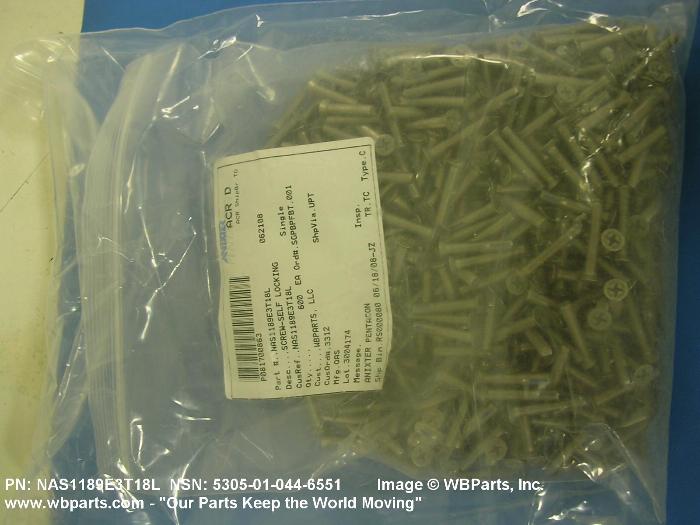 Part Alternates: NAS1189E3T18L, 5305-01-044-6551, 01-044-6551, 5305010446551, 010446551