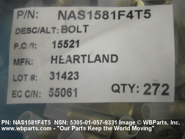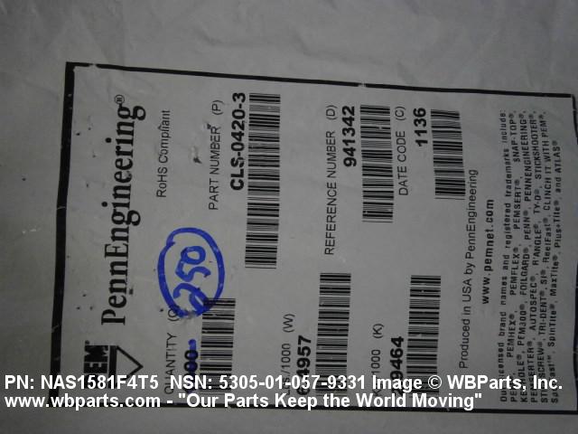 NSN 5305-01-057-9331 NAS1581A4T5, NAS1581F4T5, 10114927