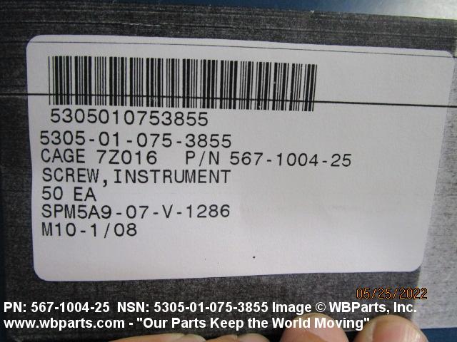 NSN 5305-01-075-3855 567-1004-25, 01-075-3855, 567100425