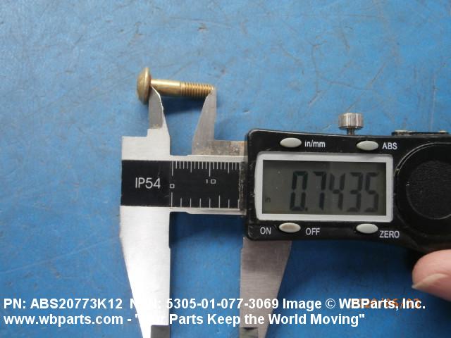 Part Alternates: ABS20773K12, 5305-01-077-3069, 01-077-3069, 5305010773069, 010773069