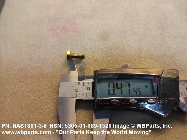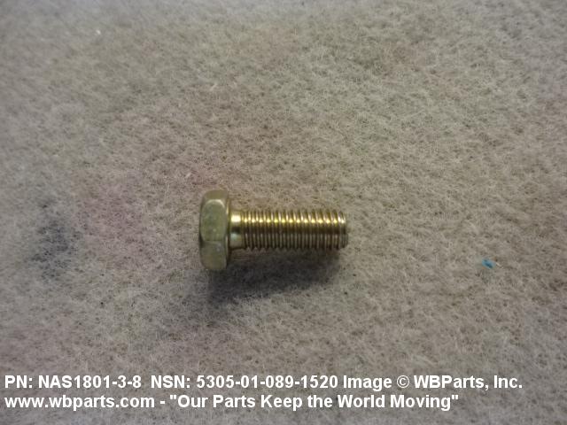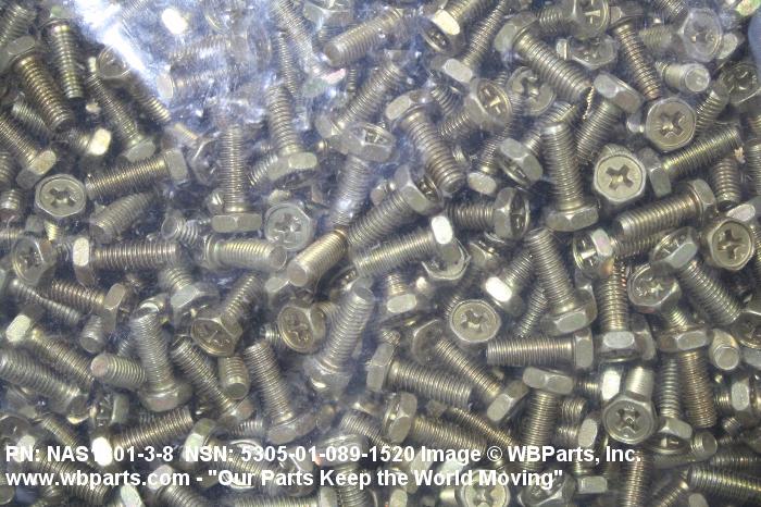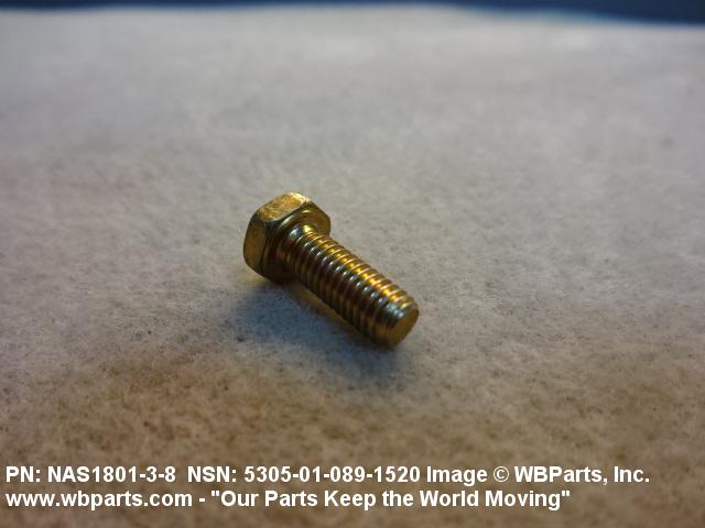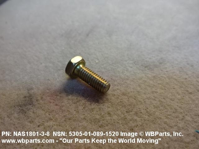 Part Alternates: NAS180138, NAS1801-3-8, BACS12C838, BACS12C83-8, 5305-01-089-1520, 01-089-1520, 5305010891520, 010891520