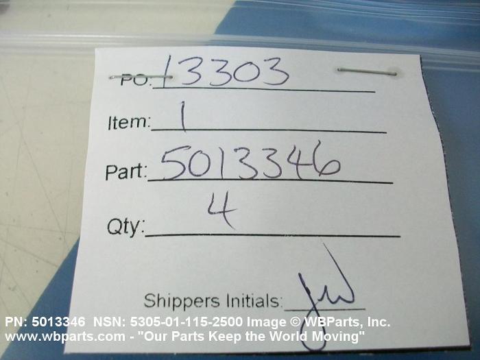 Part Alternates: 5013346, 5305-01-115-2500, 01-115-2500, 5305011152500, 011152500