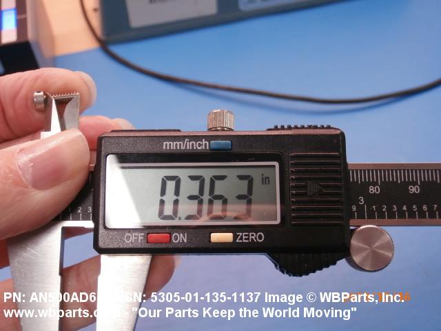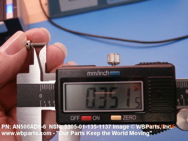 Part Alternates: AN500AC66, AN500AC6-6, AN500AD66, AN500AD6-6, FFS92, FF-S-92, 5305-01-135-1137, 01-135-1137, 5305011351137, 011351137