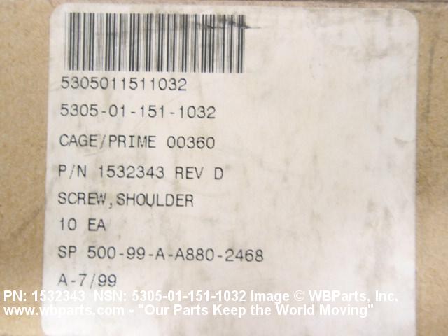 Part Alternates: 1532343, 5305-01-151-1032, 01-151-1032, 5305011511032, 011511032