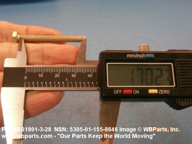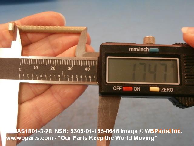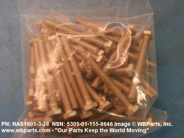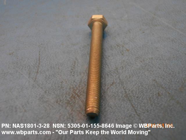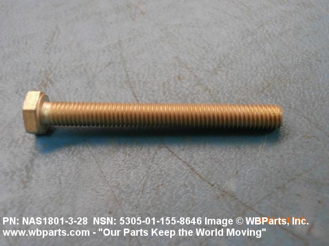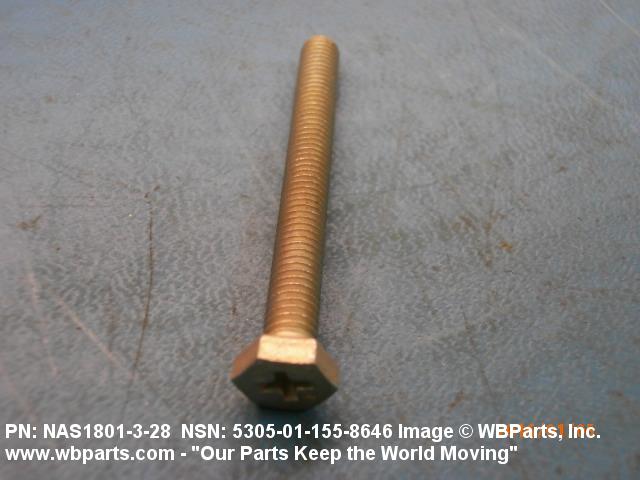 Part Alternates: NAS1801328, NAS1801-3-28, BACX12CB328, BACX12CB3-28, 5305-01-155-8646, 01-155-8646, 5305011558646, 011558646