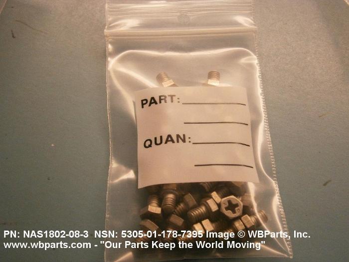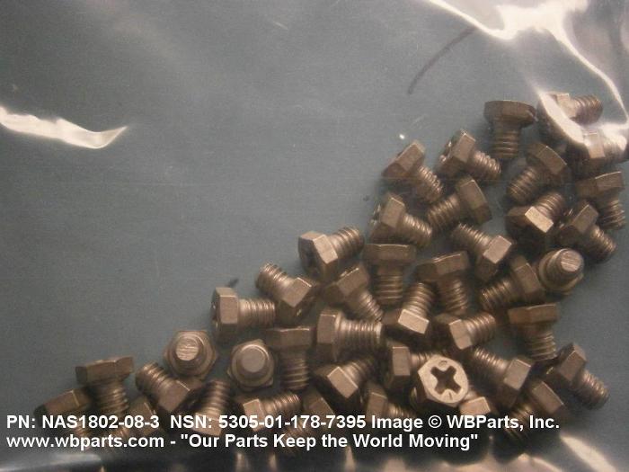 Part Alternates: NAS1802083, NAS1802-08-3, 5305-01-178-7395, 01-178-7395, 5305011787395, 011787395