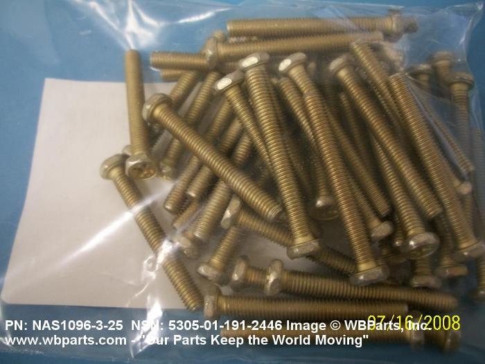 Part Alternates: NAS1096325, NAS1096-3-25, 5305-01-191-2446, 01-191-2446, 5305011912446, 011912446
