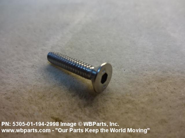 5305-01-194-2998 An externally threaded fastener whose threaded portion is of one nominal diameter. The head has an internal socket or multiple spline for use with an inserted driver. A locking feature may be incorporated in the design of the head or threads. Excludes items with bevel (conical) heads. See BOLT, INTERNAL WRENCHING. Excludes SCREW, SHOULDER; and SCREW, MACHINE.